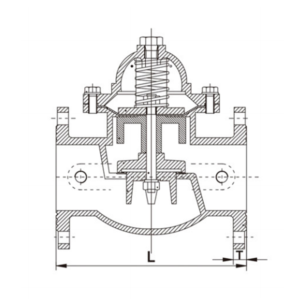 Den justerbara tryckreduceringsventilen är en hydrauliskt manövrerad typ av membran, installerad i vattenförsörjnings- och avloppssystemet och reglerar huvudventilens utloppstryck till ett fast värde. Inloppstrycket kan reduceras till erforderligt utloppstryck genom att justera pilotventilen och utloppstrycket kan hållas stabilt genom att förlita sig på själva mediets energi, det vill säga att utloppstrycket inte ändras på grund av förändringar i inloppstrycket eller utloppsflödet. När trycket framför ventilen är lägre än det inställda trycket bakom ventilen, stängs huvudventilen automatiskt långsamt.